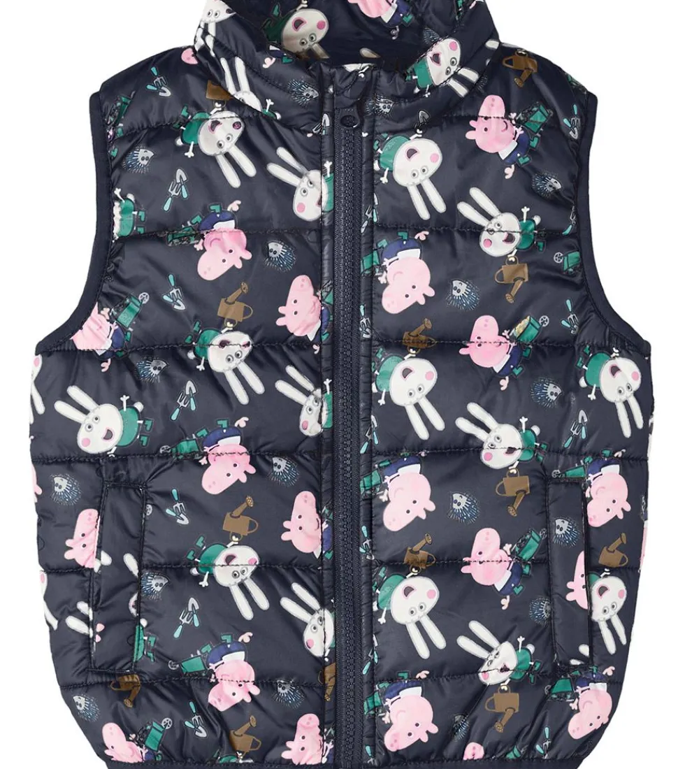 Fed Name It dynevest i navy, med Gurli Gris og hendes ven over det hele.
