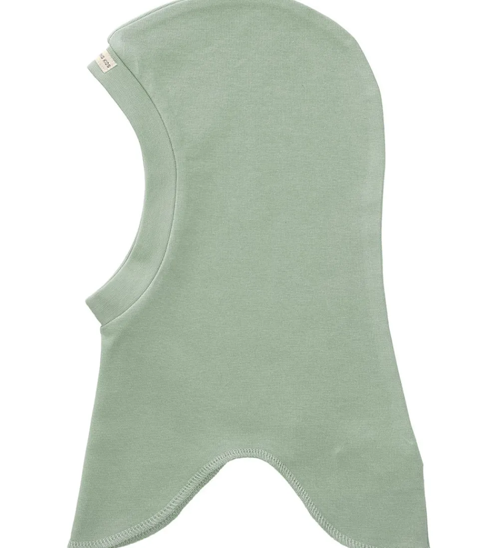 Pæn Racing Kids elefanthue i støvet lysegrøn med en logoapplikation på toppen af ribkanten ved ansigtsåbningen.
