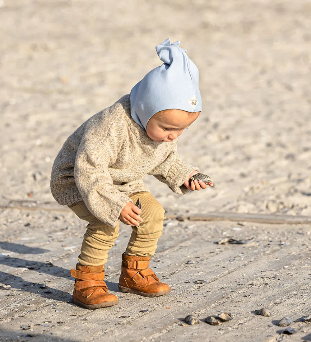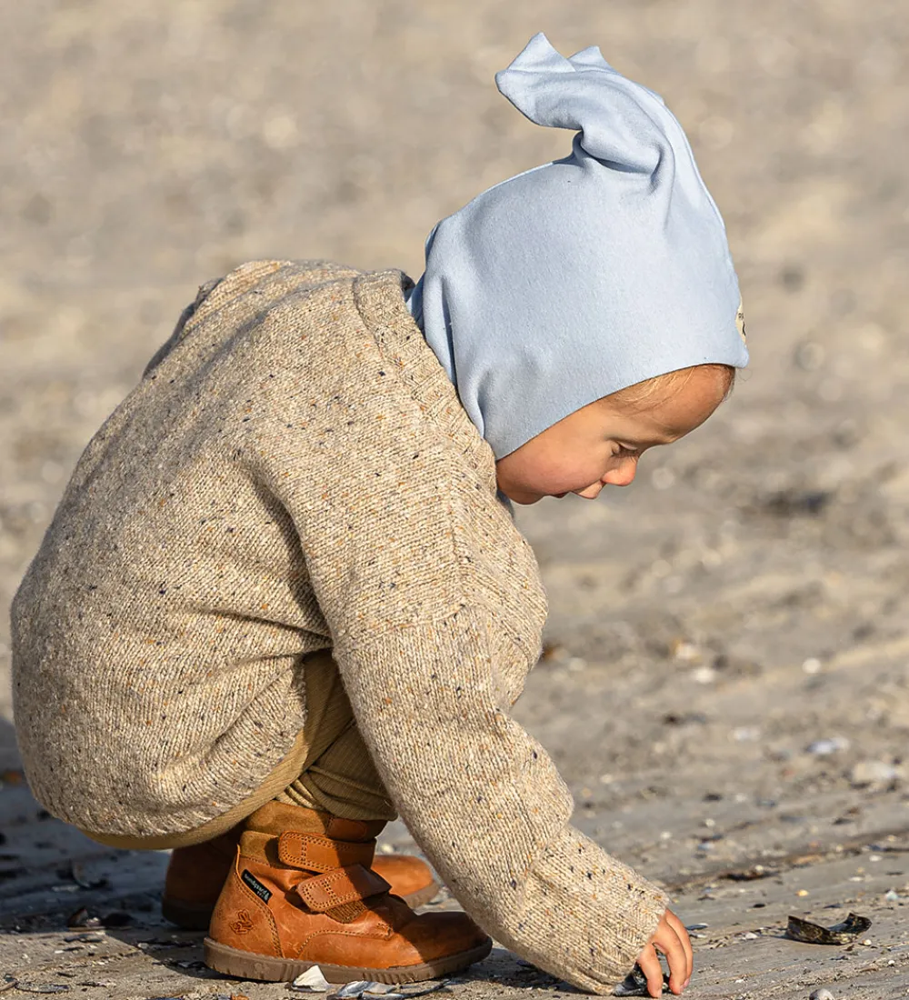 Fin Racing Kids elefanthue i lyseblå i en strikket kvalitet.