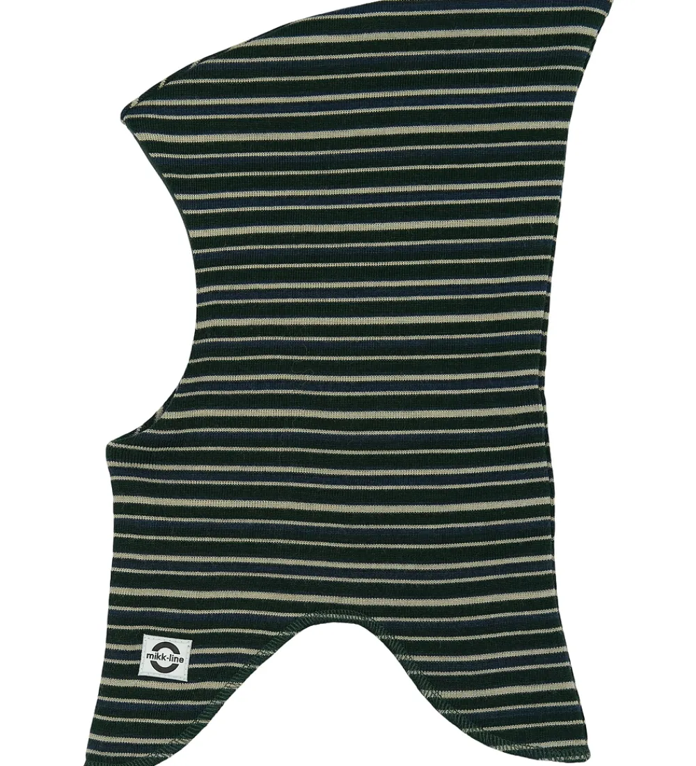 Sød Mikk-Line elefanthue i mørkegrøn med blå og grå striber.
