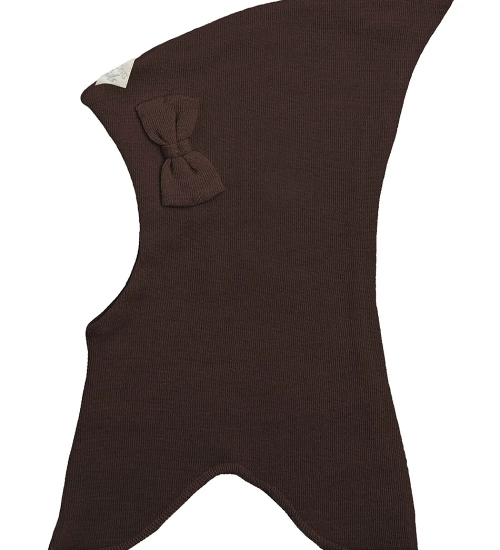 Lækker Racing Kids elefanthue i mørkebrun i en strikket kvalitet.