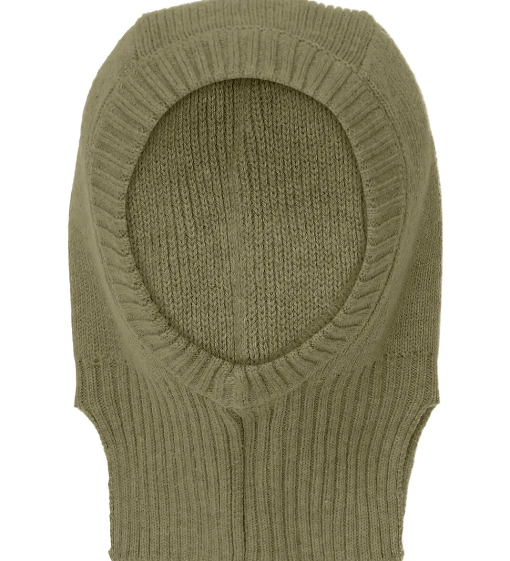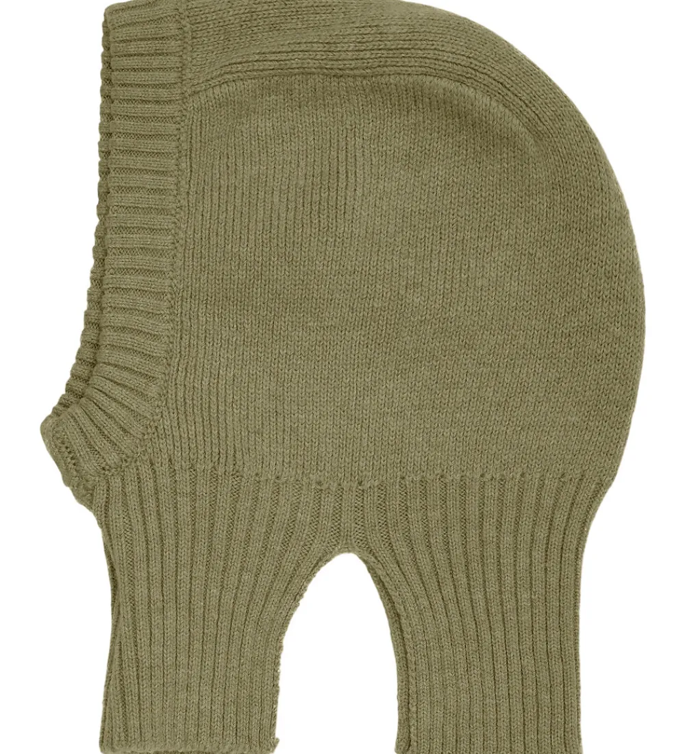 Elegant CeLaVi elefanthue i en grøn nuance i en strikket kvalitet med ribstruktur, og den er lavet af blødt og lækkert merinould.