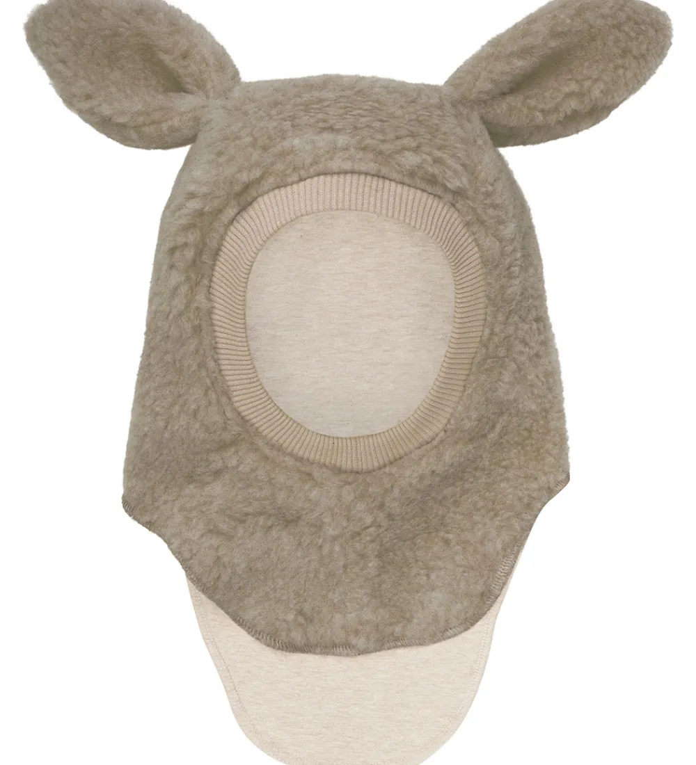 Indbydende Huttelihut elefanthue i en meleret, gråbrun nuance af varmt teddyfleece.