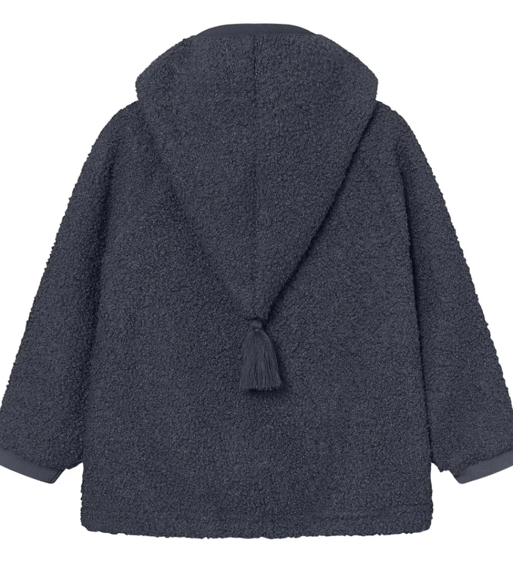 Mini A Ture fleecejakken har fast hætte med en spids form, og i enden sidder der en flot kvast. Ærmerne har brede ribkanter. Fleecejakken åbnes med en lynlås med hagebeskytter, og fortil sidder der praktiske lommer. På indersiden har fleecejakken almindeligt, blødt fleece.