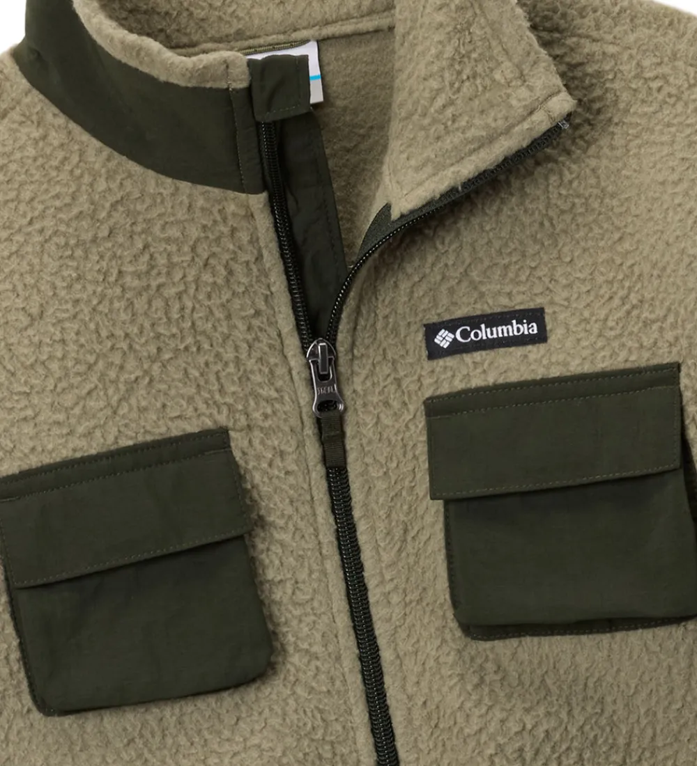 Columbia fleecejakken har lange ærmer og en gennemgående lynlås med høj hals. På fronten har fleecejakken fire store lommer med flaplukning, der giver et funktionelt design.