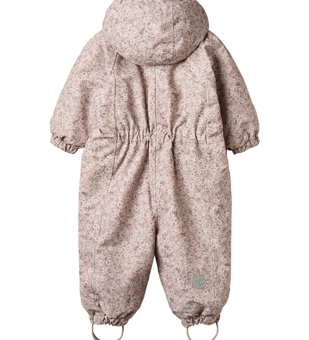 Sød Wheat flyverdragt i rosa med et alloverblomsterprint i lilla, rosa og grønne farver. Flyverdragten rummer også både reflekspipings og -print.