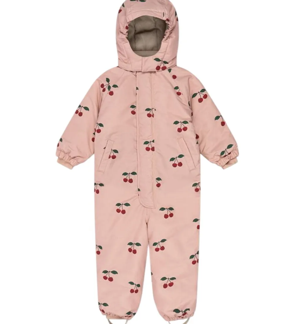 Fin Konges Sløjd flyverdragt i en støvet rosa med et alloverprint af kirsebær.