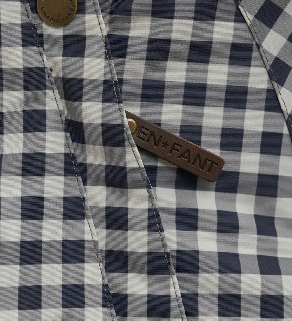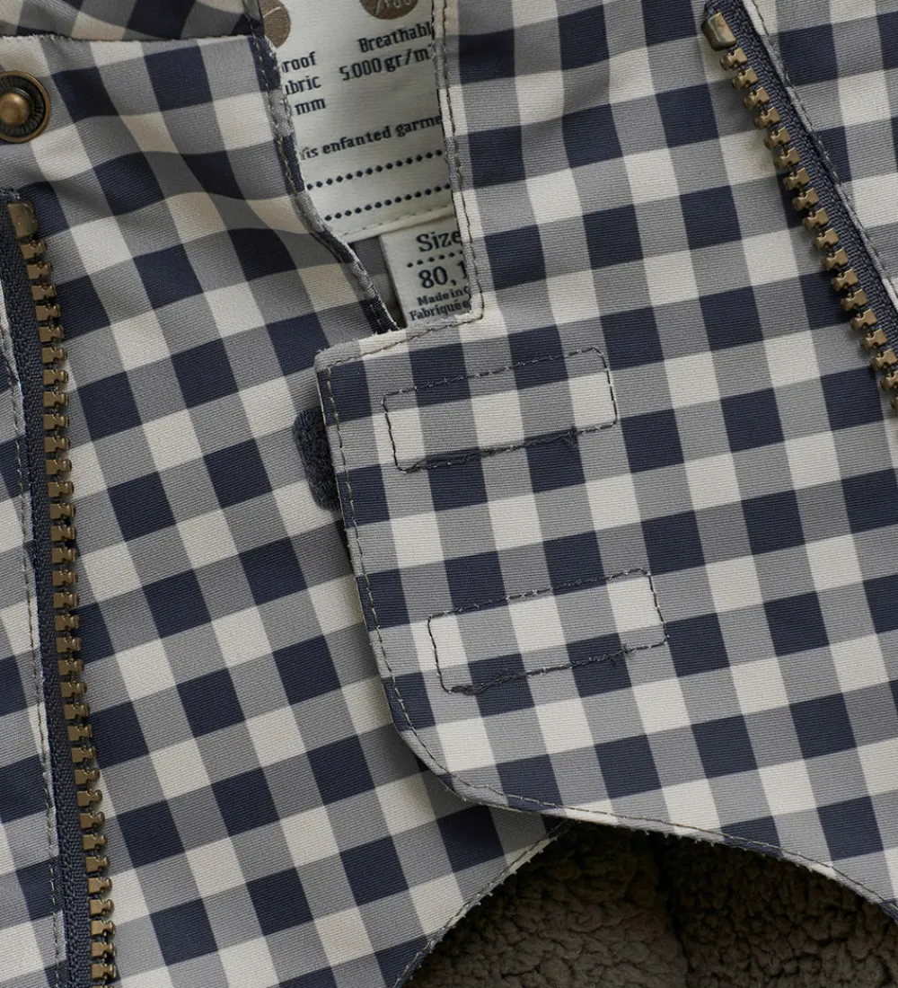 Dejlig En Fant flyverdragt med tern i mat sort, grå og beige.