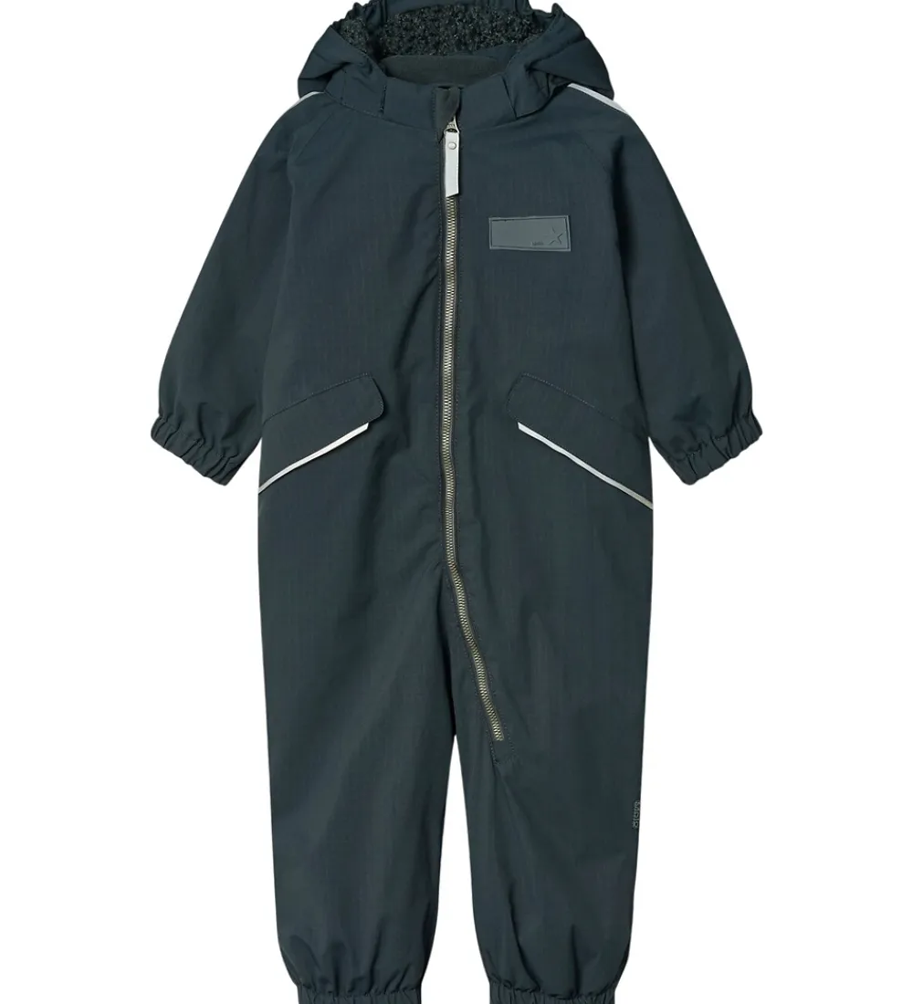 Sød Molo flyverdragt i ensfarvet, mørk navy med en gummiapplikation på venstre bryst. Flyverdragten har også logoreflekser og reflekspipings samt er der små, fine bamseører på hætten.