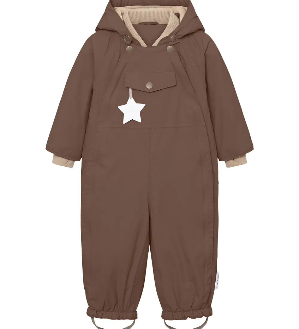 Fin Mini A Ture flyverdragt i kastanjebrun. Flyverdragten er med beige for.