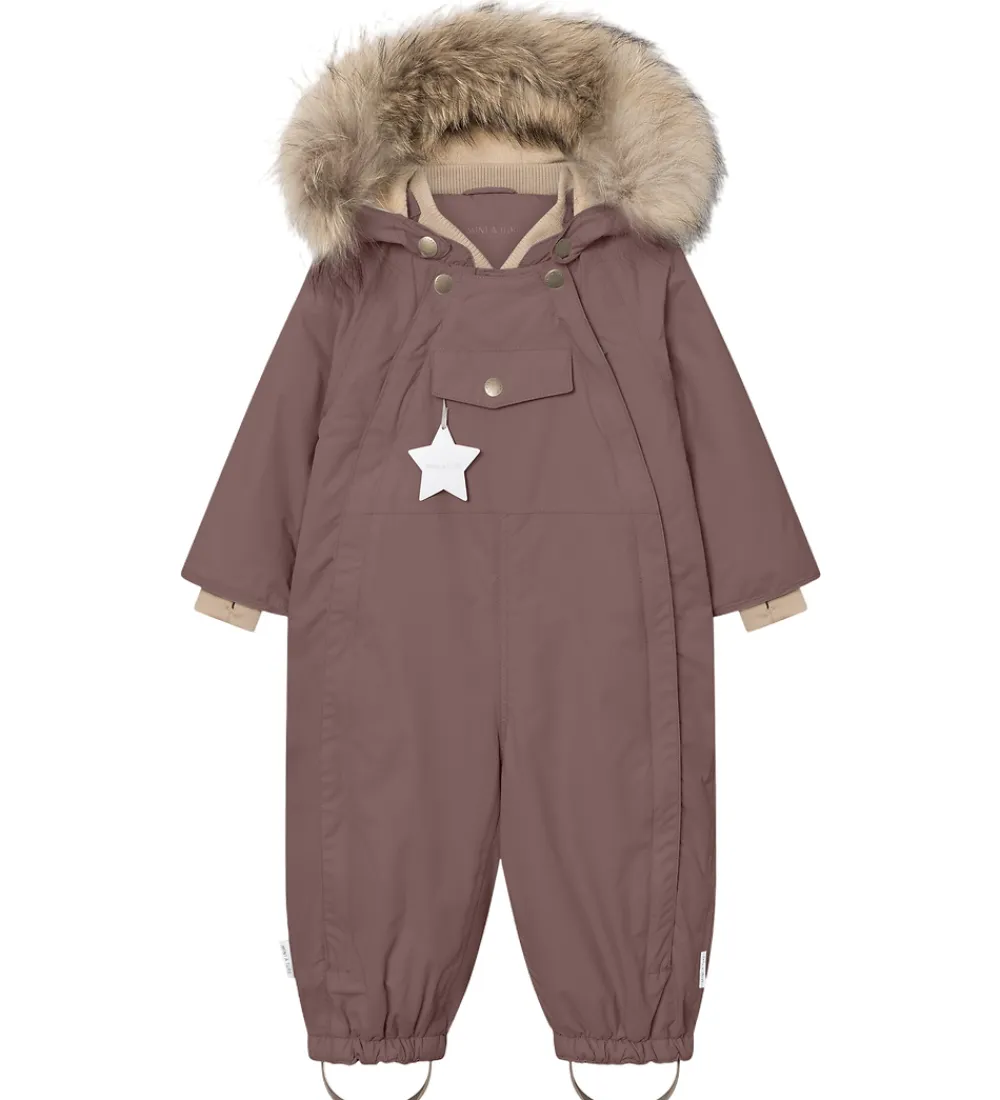 Mini A Ture flyverdragtens hætte er aftagelig, samt er den foret med fleece, og så har den en skjult elastiksnøre, så den sidder tæt omkring ansigtet. Ansigtsåbningen har en flot pelskant, som sidder fast med en lynlås. Der er en lækker ribkant i kraven, der gør den ekstra behagelig. Flyverdragten er foret med lækkert blødt fleece i kroppen, mens der er glatvævet for i ærmer og ben. Flyverdragten har en skjult elastiksnøre der kan justeres indvendigt, så flyverdragten sidder godt i taljen.