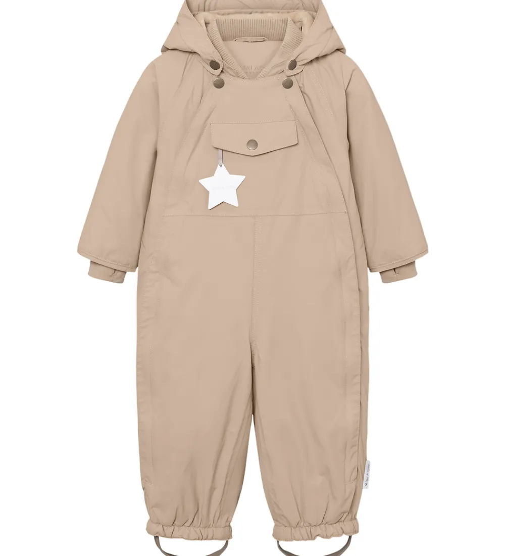 Fin Mini A Ture flyverdragt i lysebrun. Flyverdragten er med beige for.
