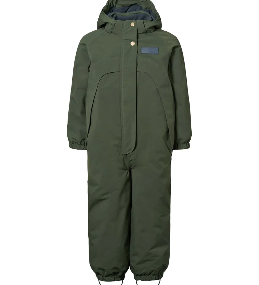 Lækker Molo flyverdragt i ensfarvet mørkegrøn med en gummiapplikation på venstre bryst. Flyverdragten er udstyret med store stjernereflekser og reflekspipings.