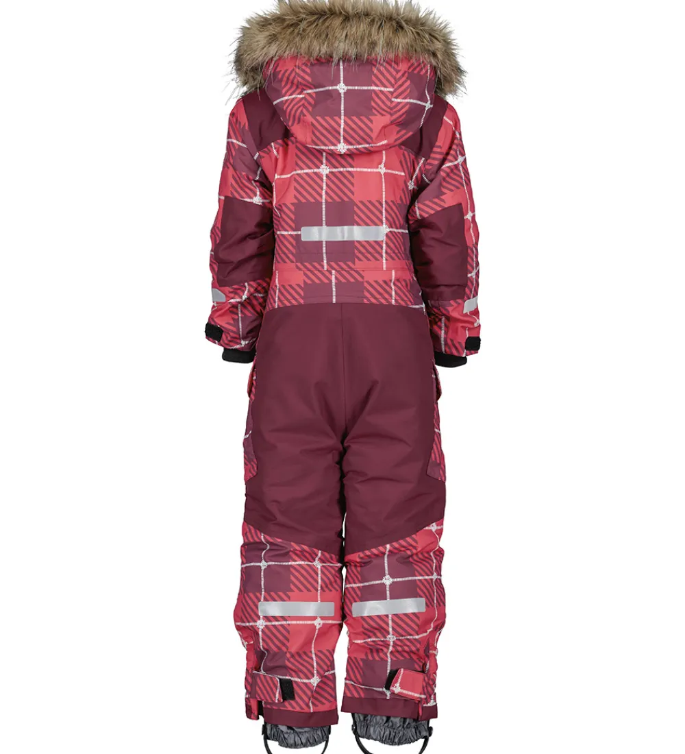 Flot Didriksons flyverdragt i rød med en overdel i et skovmandstern-design i røde nuancer og grå. Flyverdragten er med logoer og refleksprint.