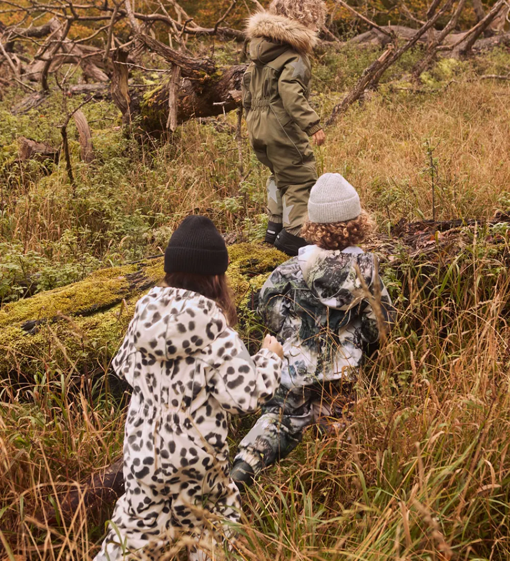 Smart Molo flyverdragt i støvet grøn. Flyverdragten er udstyret med store stjernereflekser og reflekspipings.
