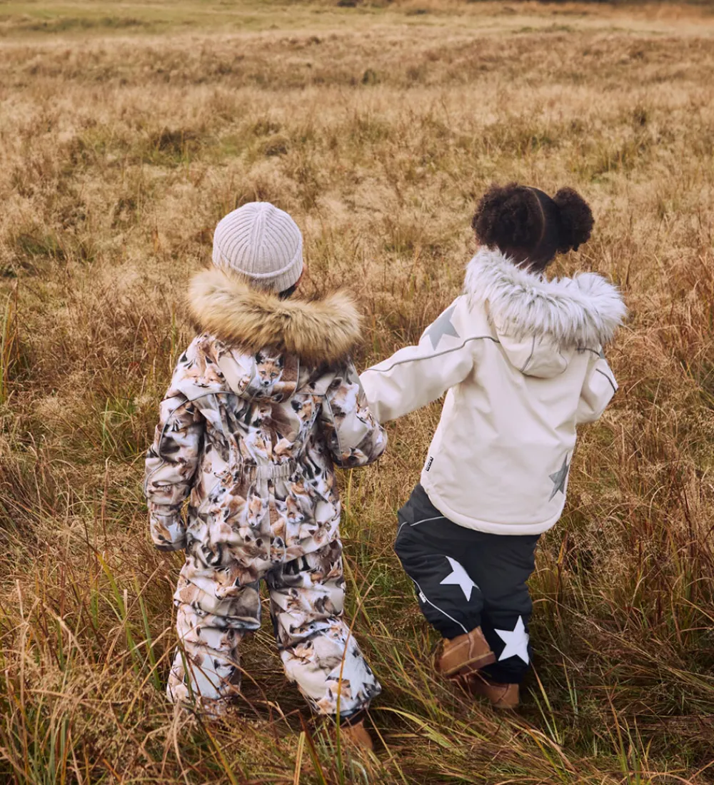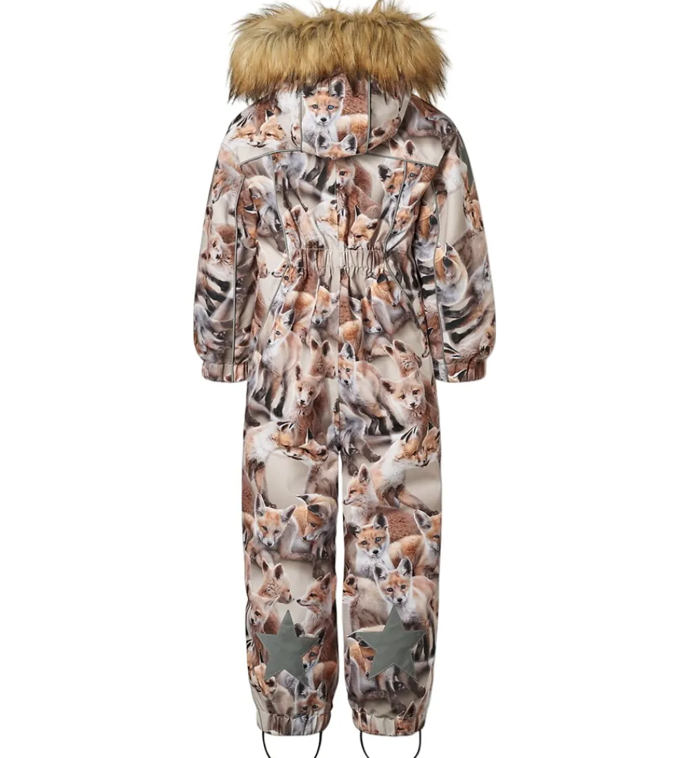 Smart Molo flyverdragt med et hyggeligt alloverprint af legende ræve. Flyverdragten er udstyret med store stjernereflekser og reflekspipings.