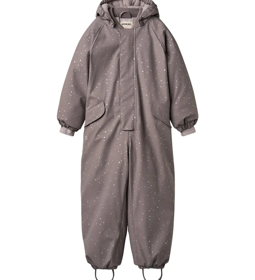 Lækker Wheat flyverdragt af PU i lilla med et lyst print af små stjerner.