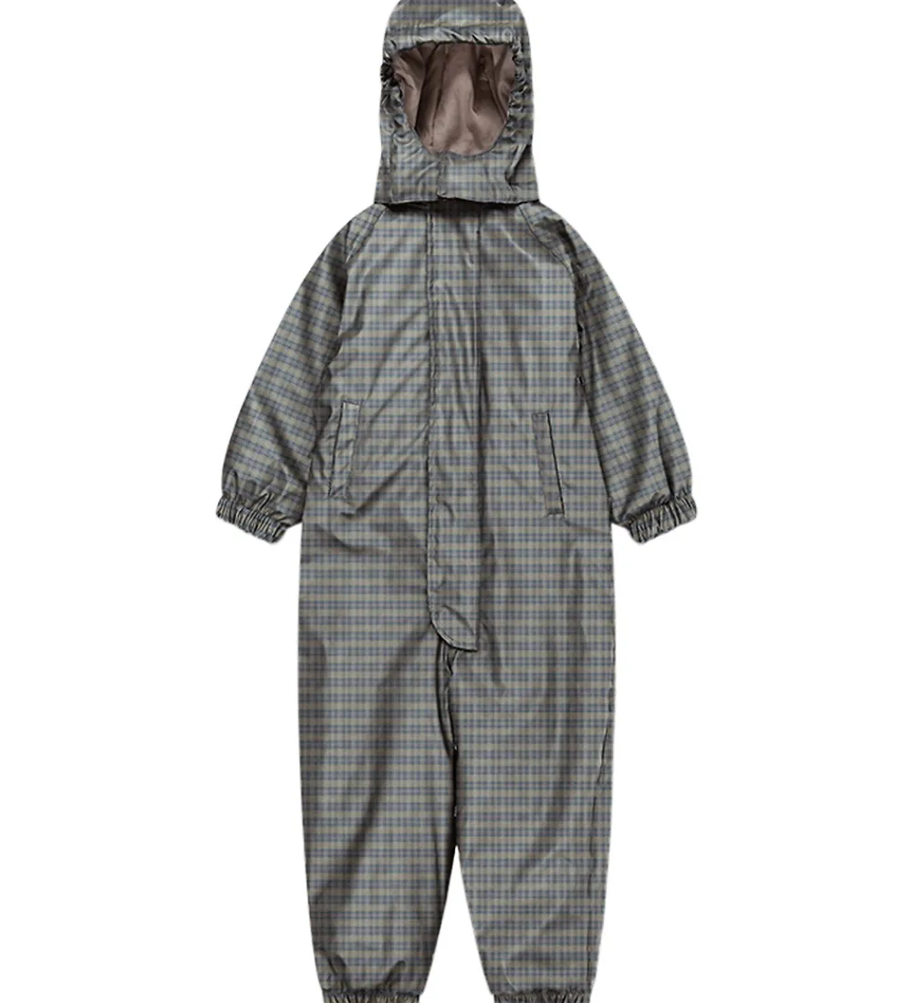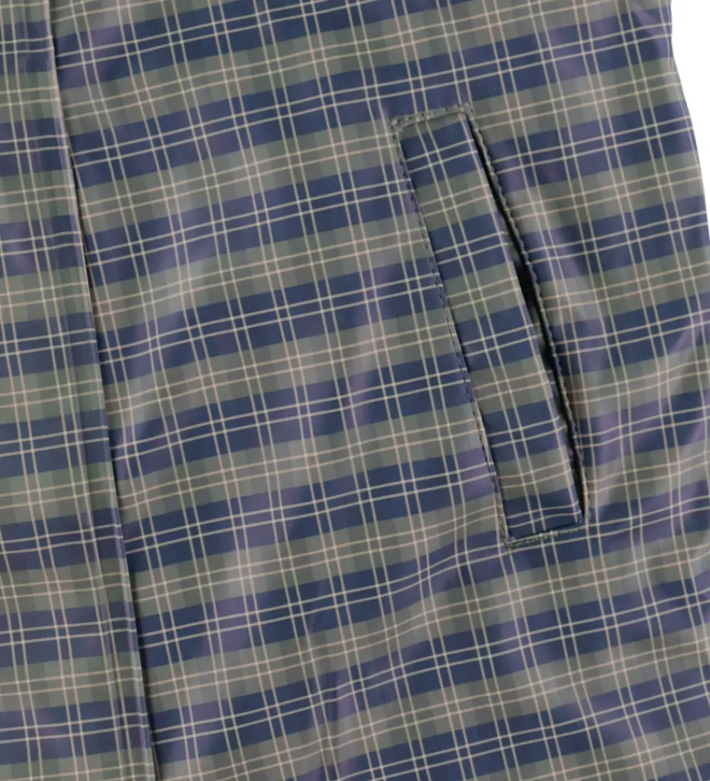 Fin Konges Sløjd flyverdragt i PU med et ternet print i blå og grønne nuancer.