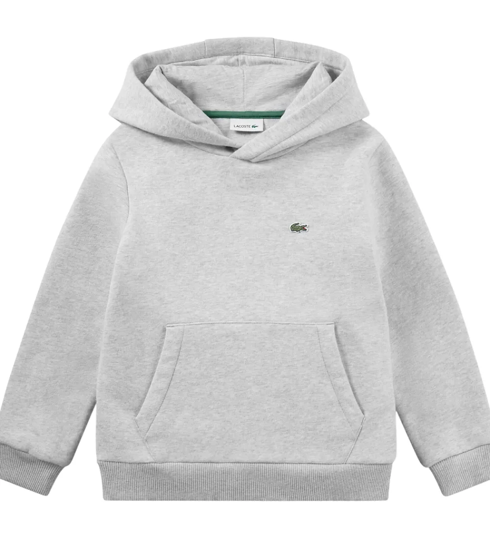 Elegant Lacoste hættetrøje i meleret råt sweat. Hættetrøjen har et diskret krokodillelogo på brystet, der fremhæver brandets identitet. Lacoste hættetrøjen har en praktisk kængurulomme foran. Ærmerne og bunden har ribkanter, der bidrager til en klassisk struktur, og på indersiden er der blødt, børstet bomuld.