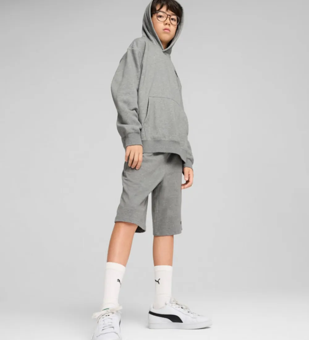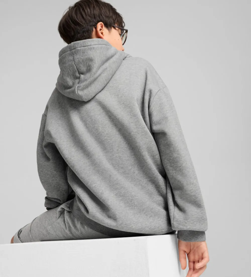 Lækker Puma hættetrøje i gråmeleret med et sort, broderet logo på venstre bryst. Hættetrøjen har en blød hætte og en rummelig kængurulomme. Den har en afslappet pasform med lange ærmer og brede ribkanter i ærme- og taljeåbning. Indvendigt er der blødt, børstet bomuld.