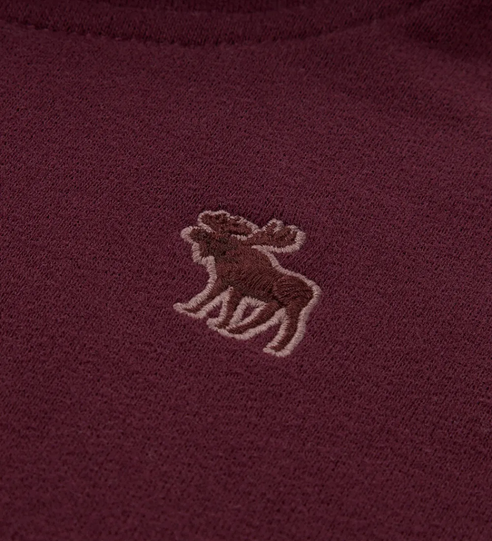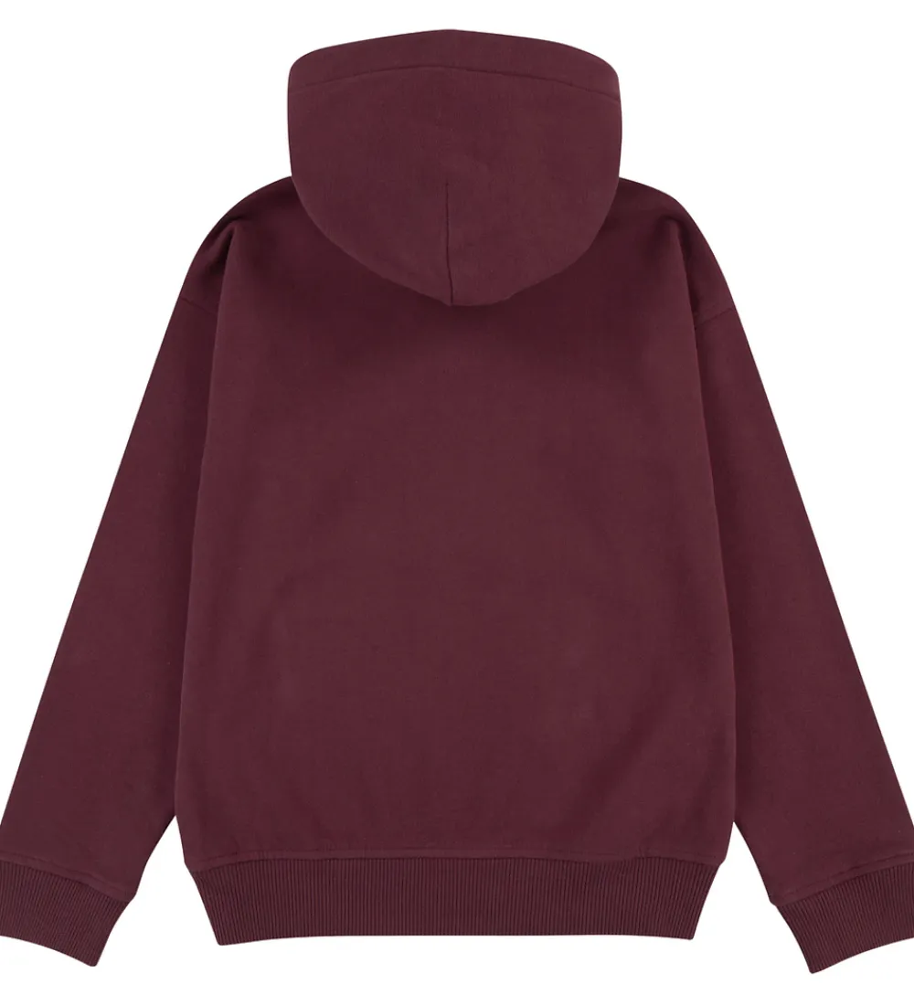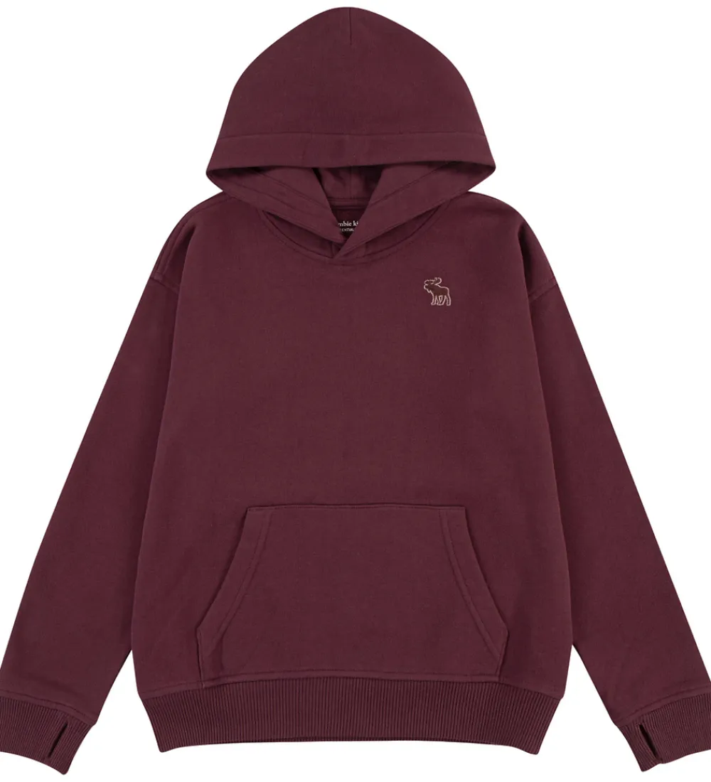 Smart hættetrøje fra Abercrombie & Fitch i ensfarvet bordeauxrød sweat. Hættetrøjen har en fast hætte med et bomuldsfor, og den har brede ribkanter. Ved ærmerne er der et lille hul til tommelfingeren. Fortil sidder der en stor kængurulomme, og hættetrøjen har blødt, børstet bomuld på indersiden.