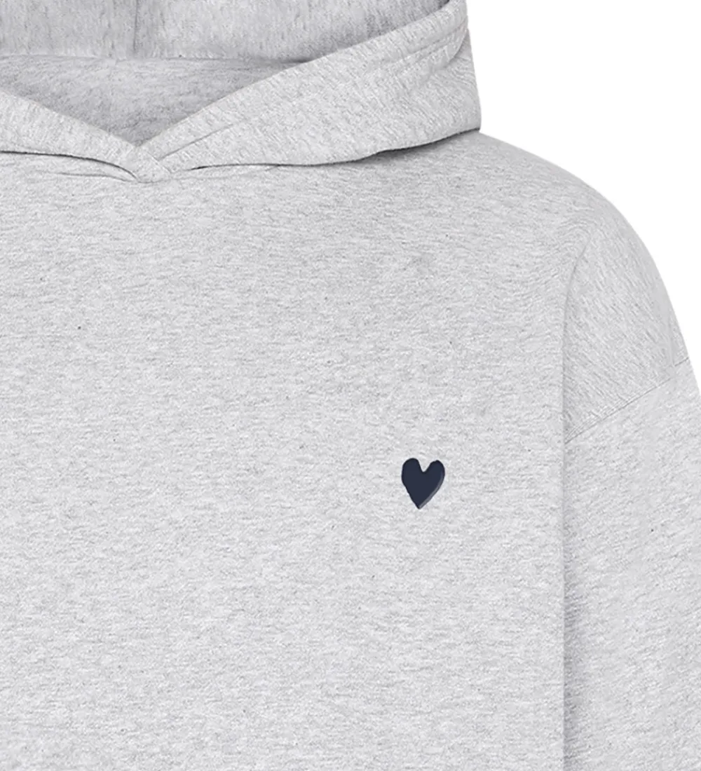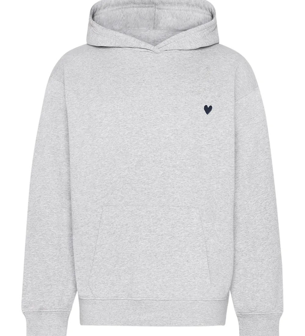 Lækker Grunt hættetrøje i gråmeleret sweat. Hætterøjen har en hætte med et bomuldsfor, og den har brede ribkanter. På indersiden har den blødt, børstet bomuld.