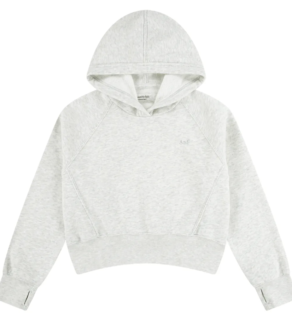 Fin hættetrøje fra Abercrombie & Fitch i meleret lysegråt sweat. Hættetrøjen har en fast hætte, og den har brede ribkanter. Ved ærmerne er der et lille hul til tommelfingeren. Hættetrøjen har blødt, børstet bomuld på indersiden.