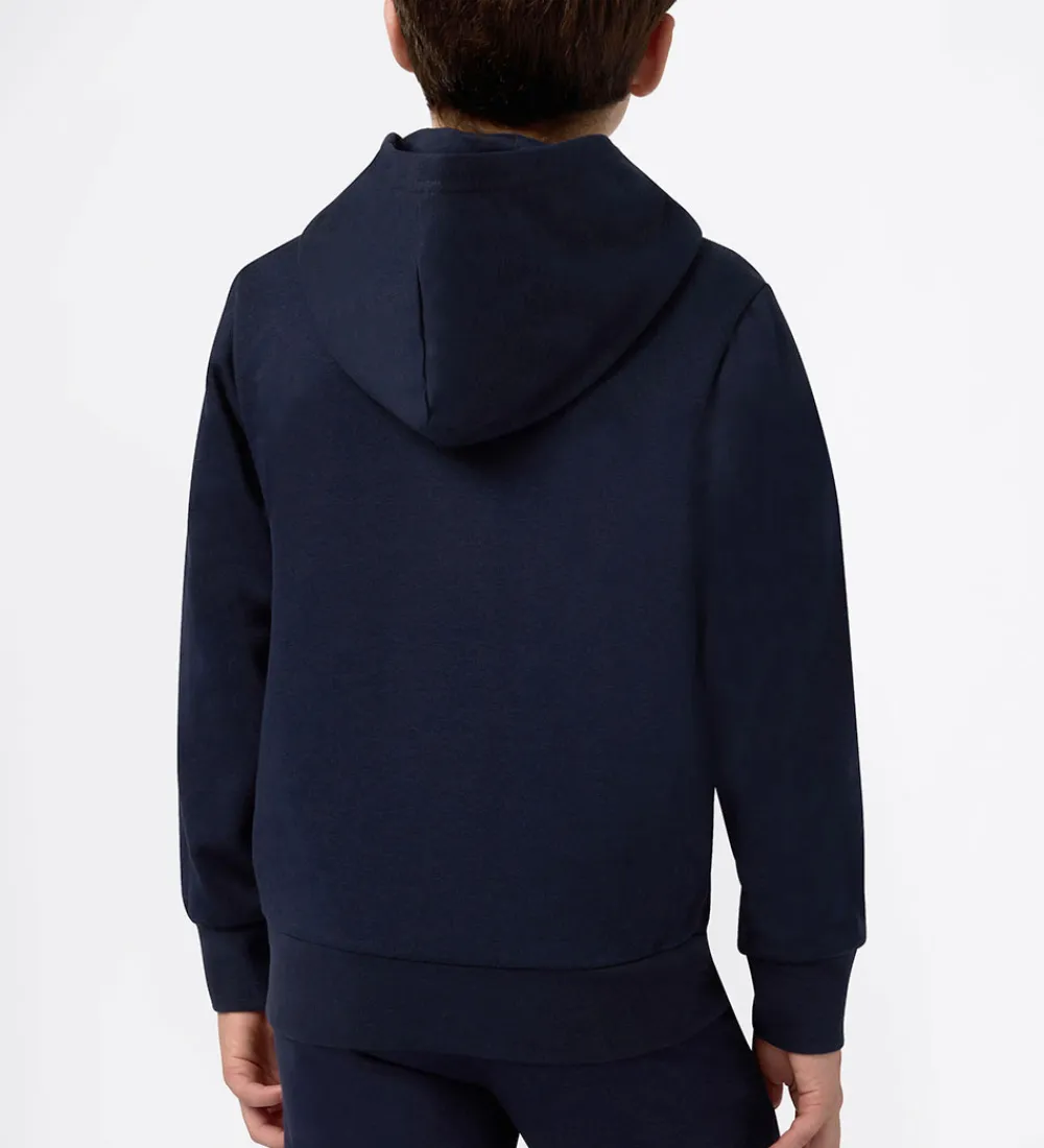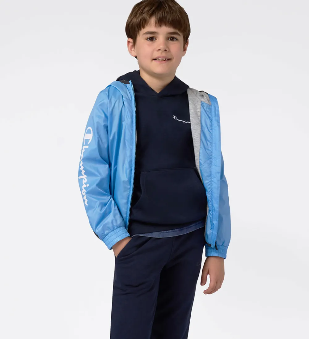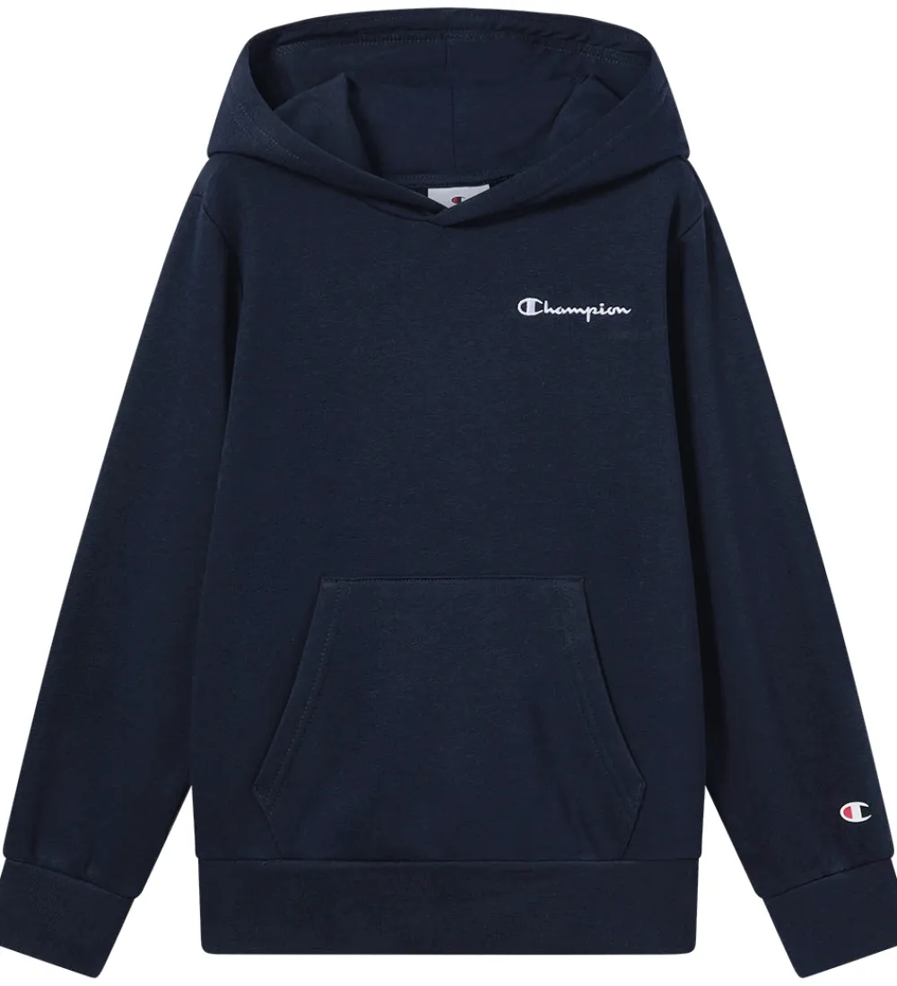 Flot Champion hættetrøje i en dyb marineblå farve. Hættetrøjen har et lille, hvidt Champion logo på brystet samt et logo på det ene ærme. Champion hættetrøjen er designet med en praktisk kængurulomme foran. Ribkanter ved ærmerne og forneden giver hættetrøjen en klassisk pasform. På inersiden er der blødt, børstet bomuld.