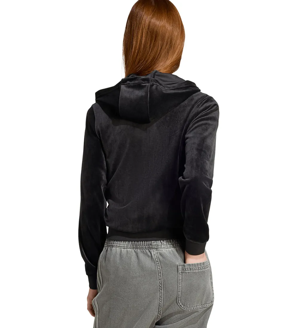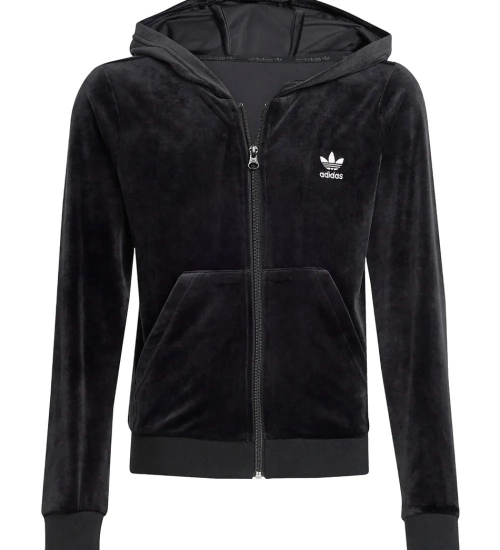 Flot adidas Originals cardigan i en elegant mørk grå farve. Modellen har en blød velourstruktur, som giver et stilrent udtryk. Cardiganen har en enkel lynlåslukning foran samt en praktisk hætte. På brystet ses adidas Originals logo, som fremhæver brandets ikoniske stil. På maven findes praktiske, åbne lommer.