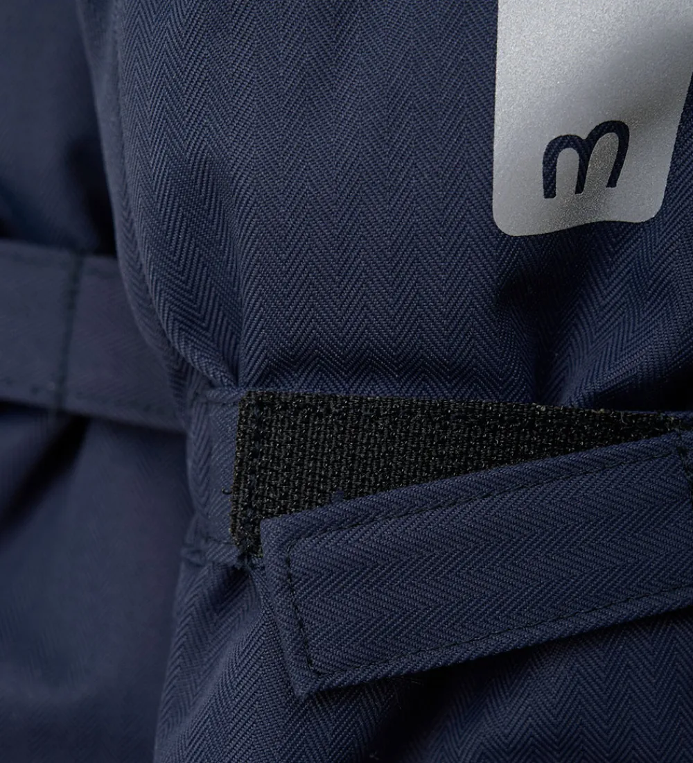 Fine Minymo handsker i navyblå med reflekslogo øverst. Minymo handskerne har snefang i åbningerne med brede ribkanter. De kan justeres ved håndleddene med en velcrorem. Indvendigt er der blødt fleece.