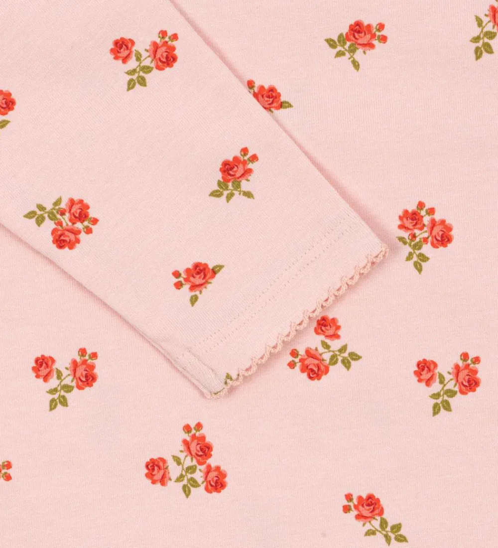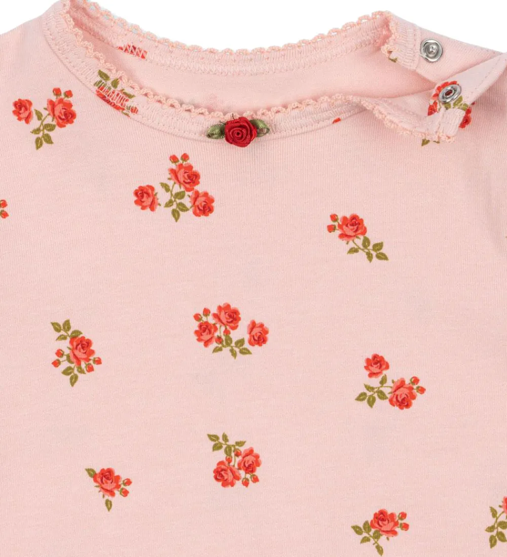 Charmerende Konges Sløjd heldragt i en lys, rosa nuance med et delikat blomstermønster.