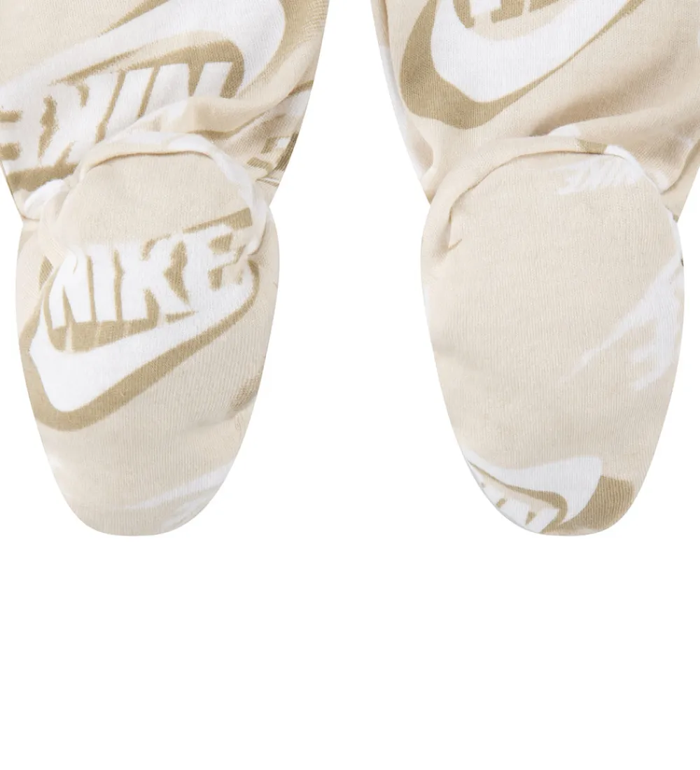 Flot heldragt fra Nike i en lys beige farve og med et allover logoprint i hvid og mørk beige. På venstre bryst er der et grønt logoprint.