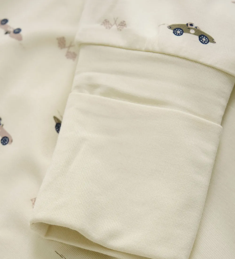 Fin Minymo heldragt i beige med alloverprint af biler.
