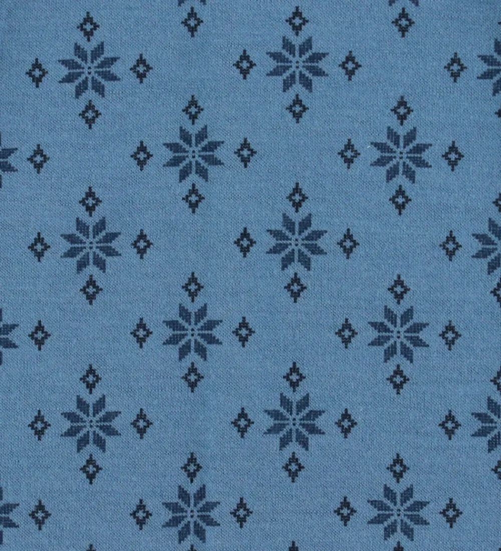 Stilfuld Joha heldragt i en flot blå nuance med et diskret snemønster over det hele.