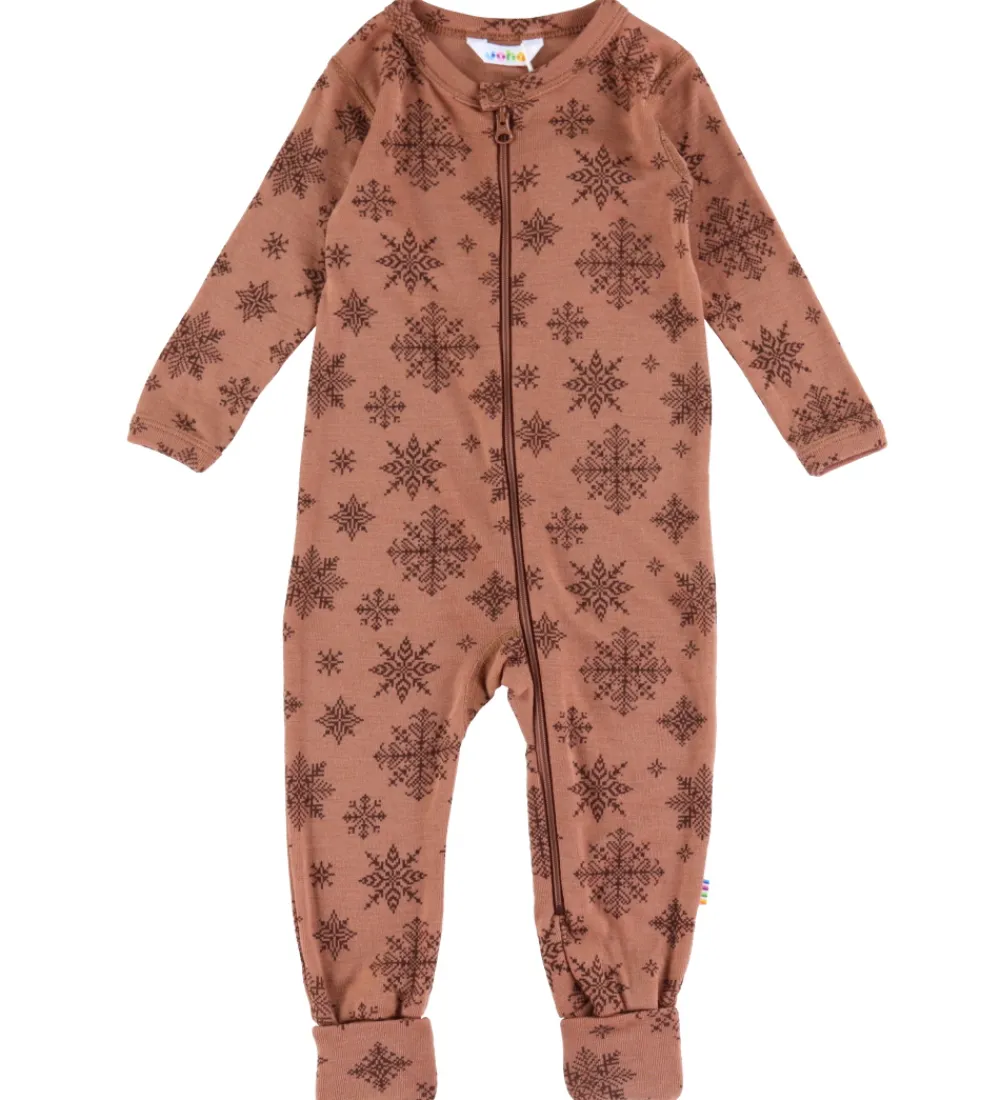 Smart Joha heldragt i rust med fine mørkebrune snefnug i forskellige former og størrelser.