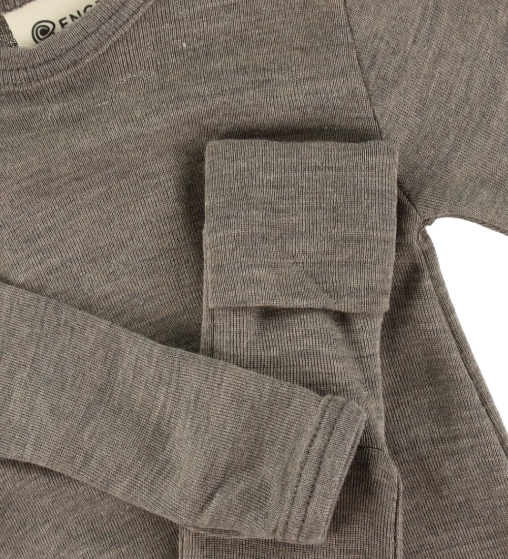 Engel heldragten har lange ærmer me smalle ribkanter, og den har lange ben med praktiske ombuk. Heldragten åbnes ved hver skulder med en trykknap, og mellem benene kan den åbnes ned til kanterne med trykknapper. Heldragten er lavet i en blød og lækker blanding af uld og silke