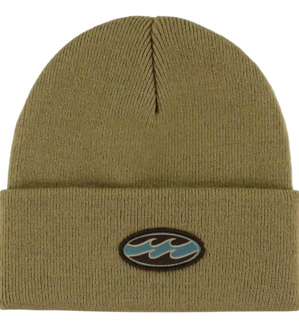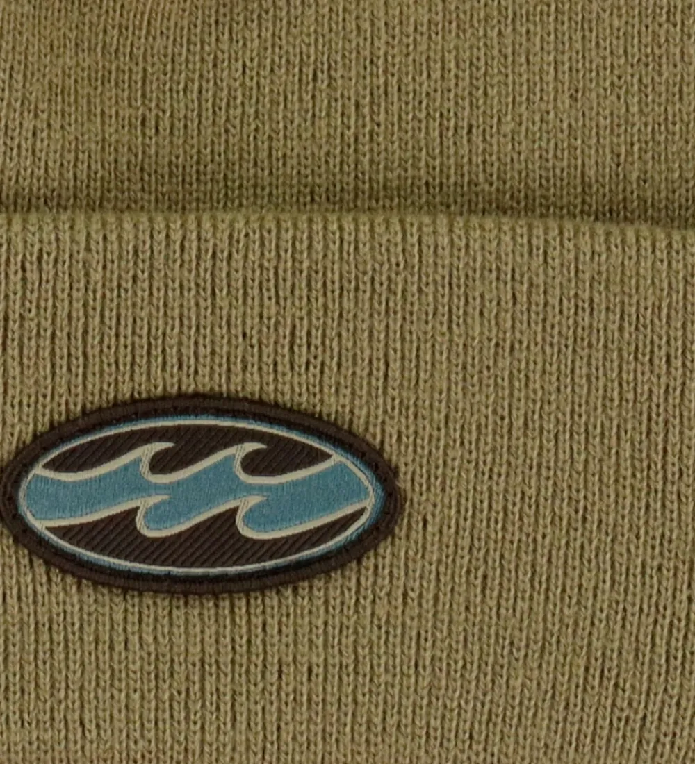 Stilfuld Billabong hue i olivengrøn farve i en strikket kvalitet. Huen beståraf to lag, og langs kanten har den et bredt ombuk.