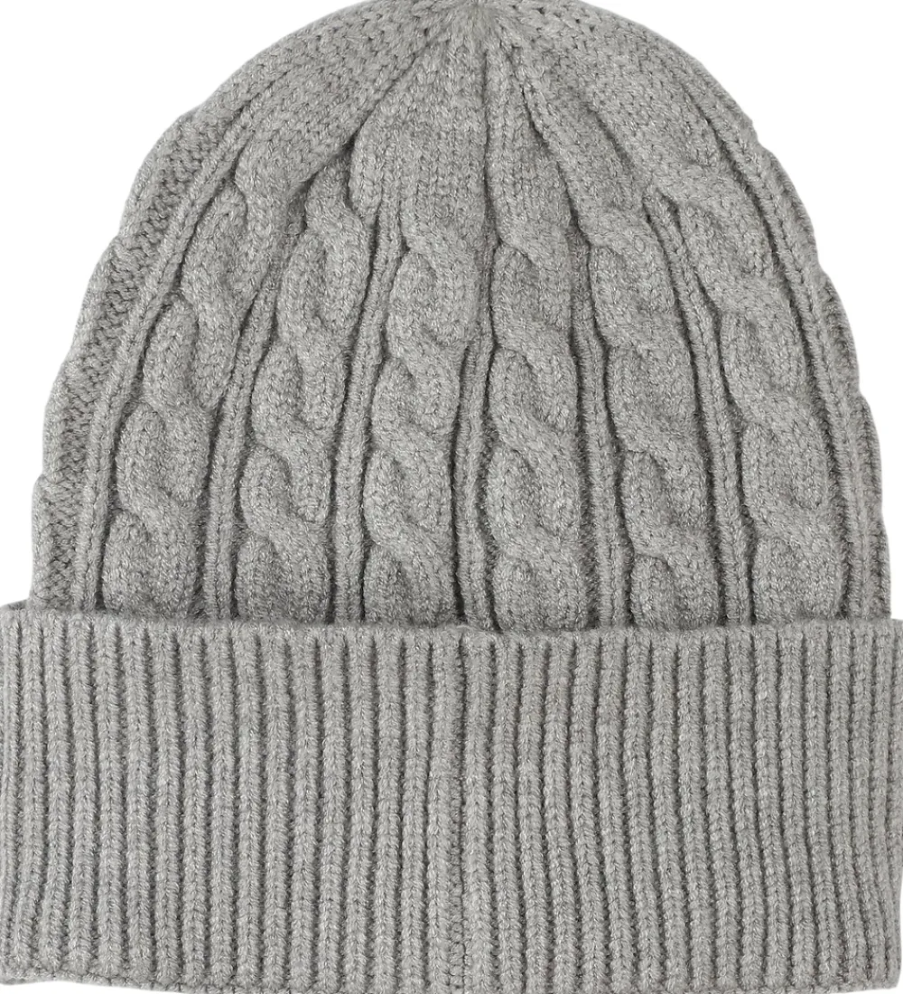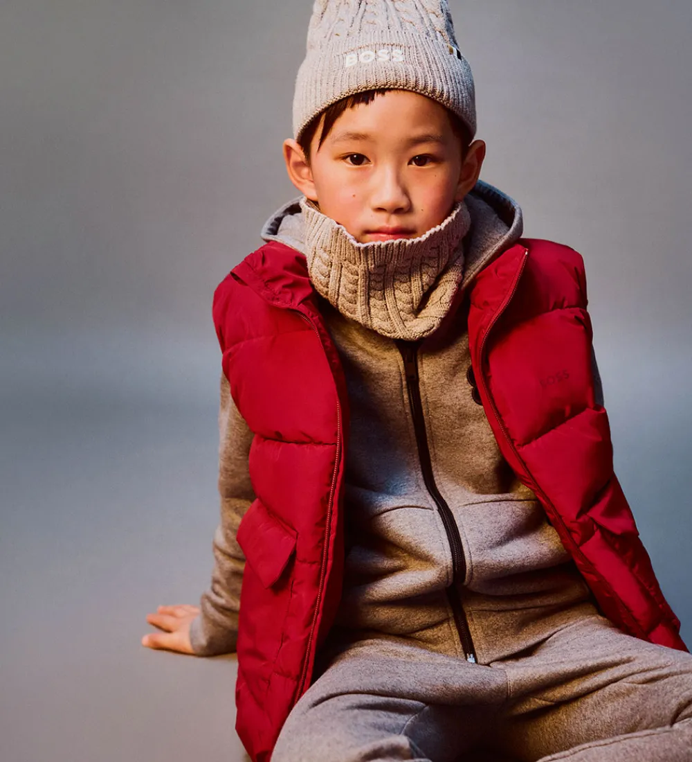 Flot BOSS hue i meleret grå i en strikket kvalitet med et flot, snoet mønster, der giver en klassisk fremtoning. Fortil står der “Boss” broderet i hvid. Huen består af et enkelt lag, og den har et bredt ombuk langs kanten.