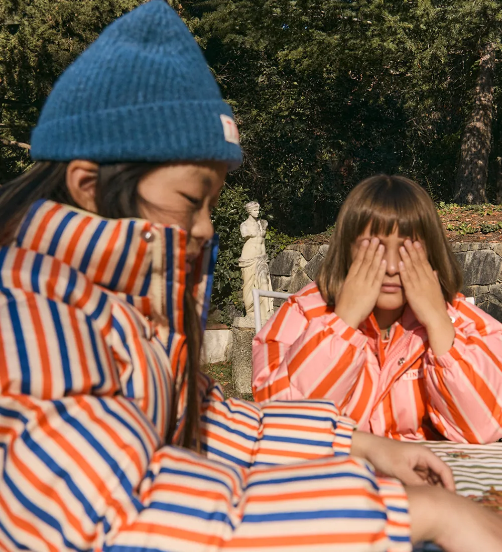 Smart hue fra Tiny Cottons i mørkeblå i en strikket kvalitet med en flot ribstruktur. Foran prydes huen af et tydeligt mærkelogo i rød kontrast på en hvid baggrund, hvilket giver et genkendeligt udtryk. Huen fra Tiny Cottons kombinerer enkelhed og funktionalitet på en elegant måde.