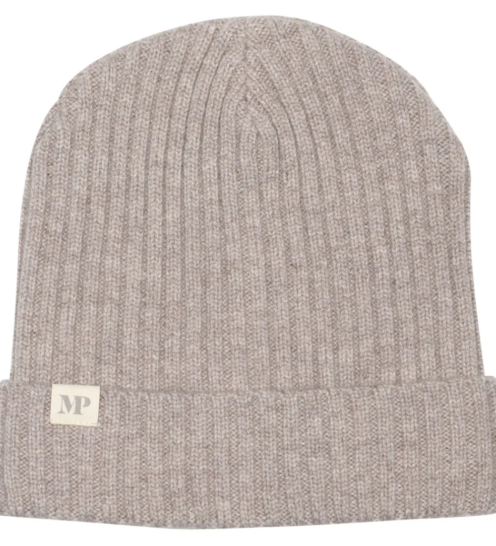 Lækker MP hue i meleret lysebrun i en strikket kvalitet med en flot ribstruktur.