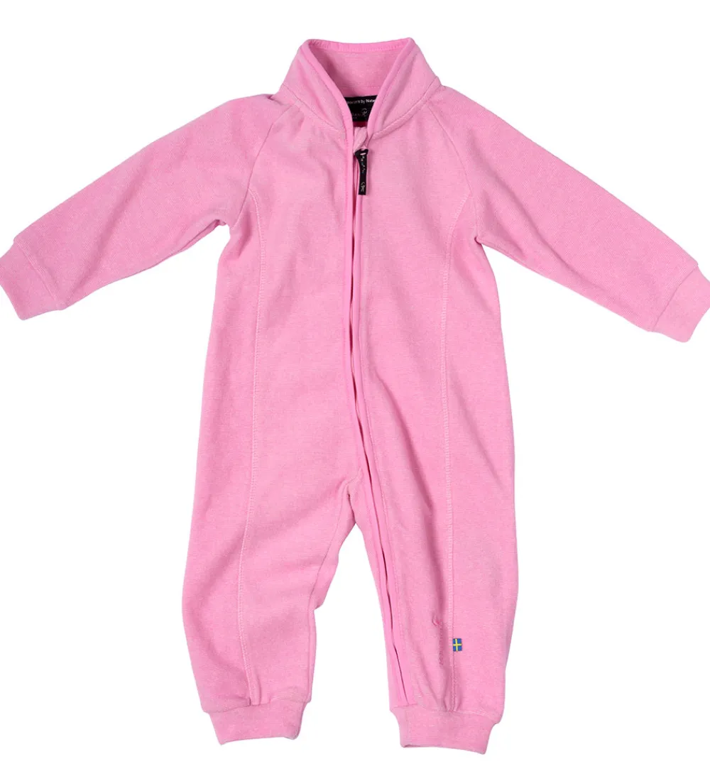 Lækker Isbjörn Of Sweden fleecedragt i rosa med fine striber og syningsdetaljer.