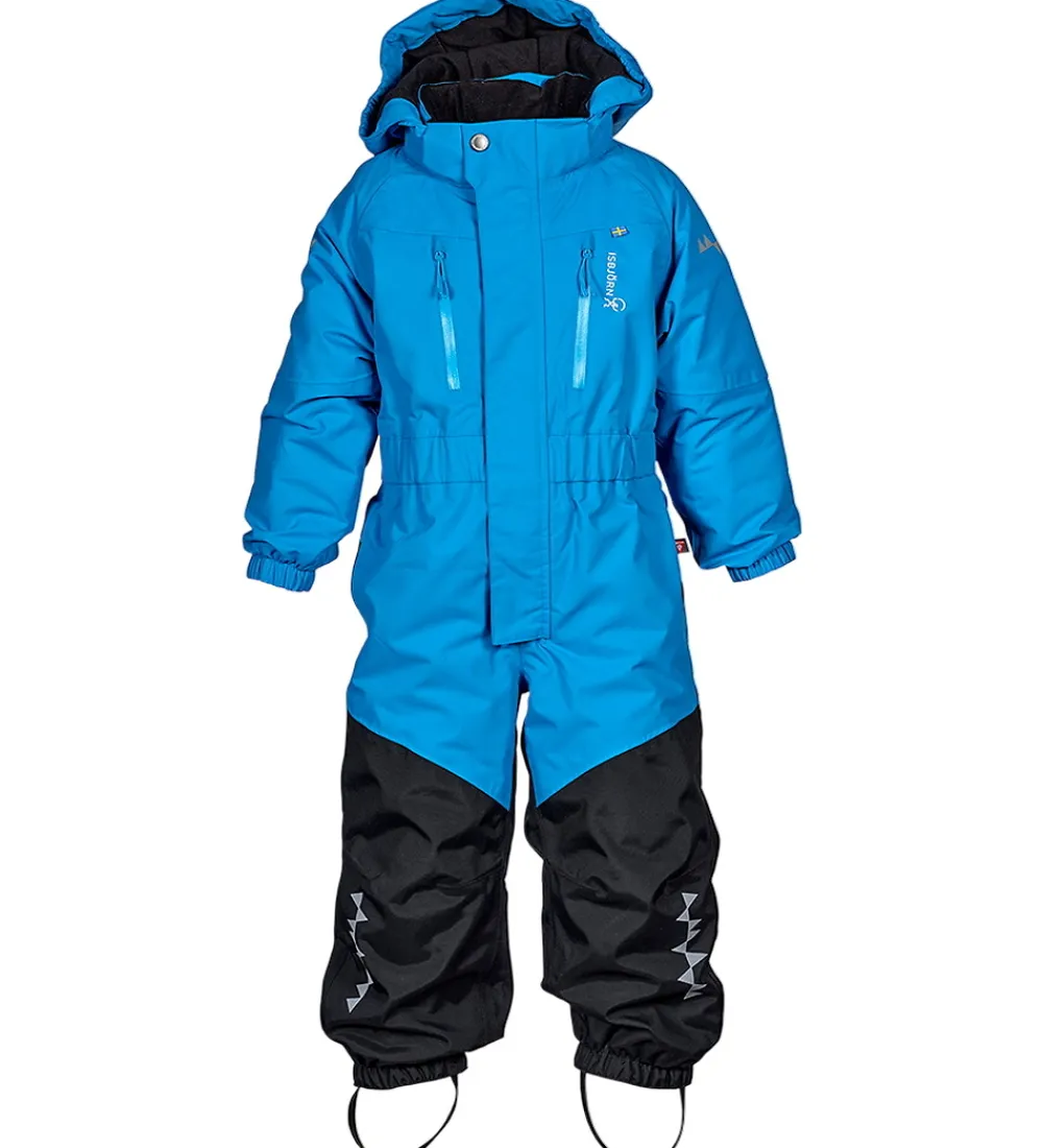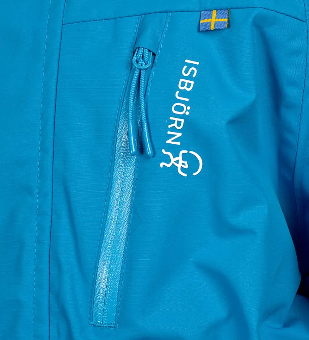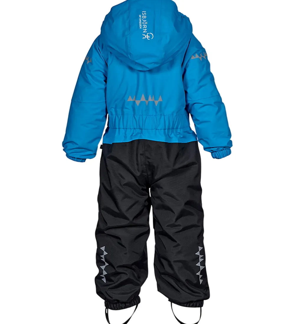 Flot Isbjörn Of Sweden flyverdragt i blå og sort. Flyverdragten har hvide logoprint på venstre bryst og hætten samt smarte refleksprint på lænden, begge skuldre og ankler.