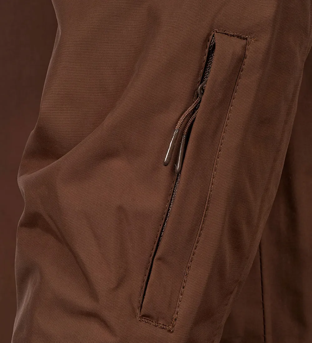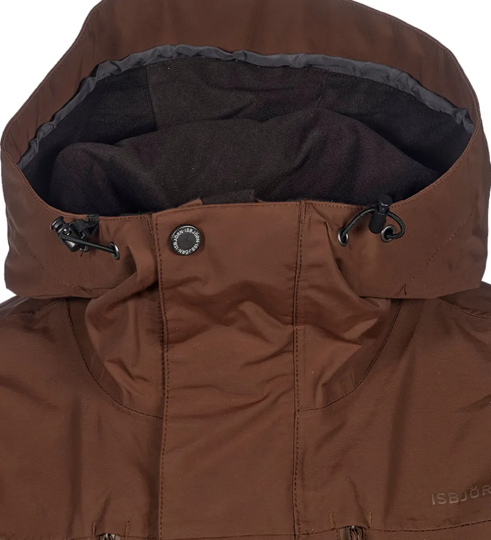Flot Isbjörn Of Sweden skaljakke i brun. Skaljakken har logoprint på venstre bryst og hætten samt smarte refleksprint på lænden og begge skuldre.