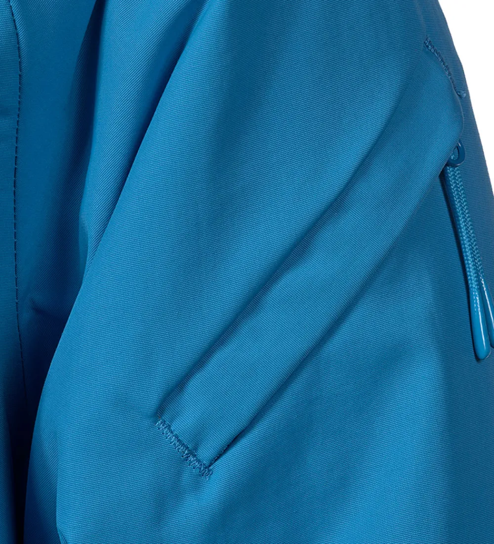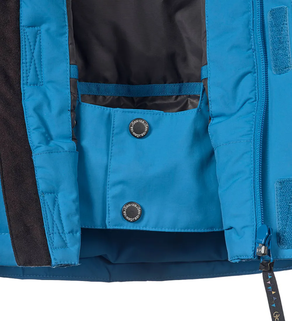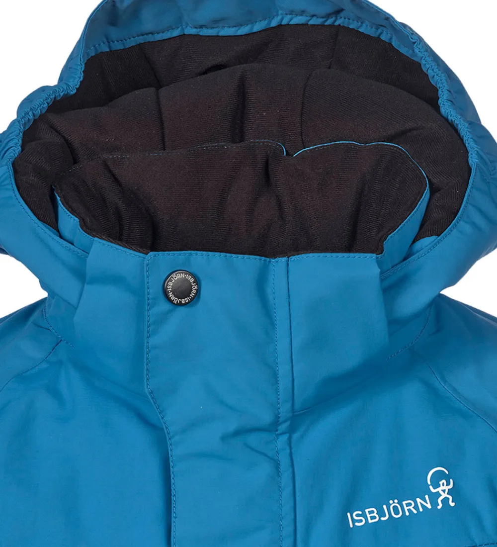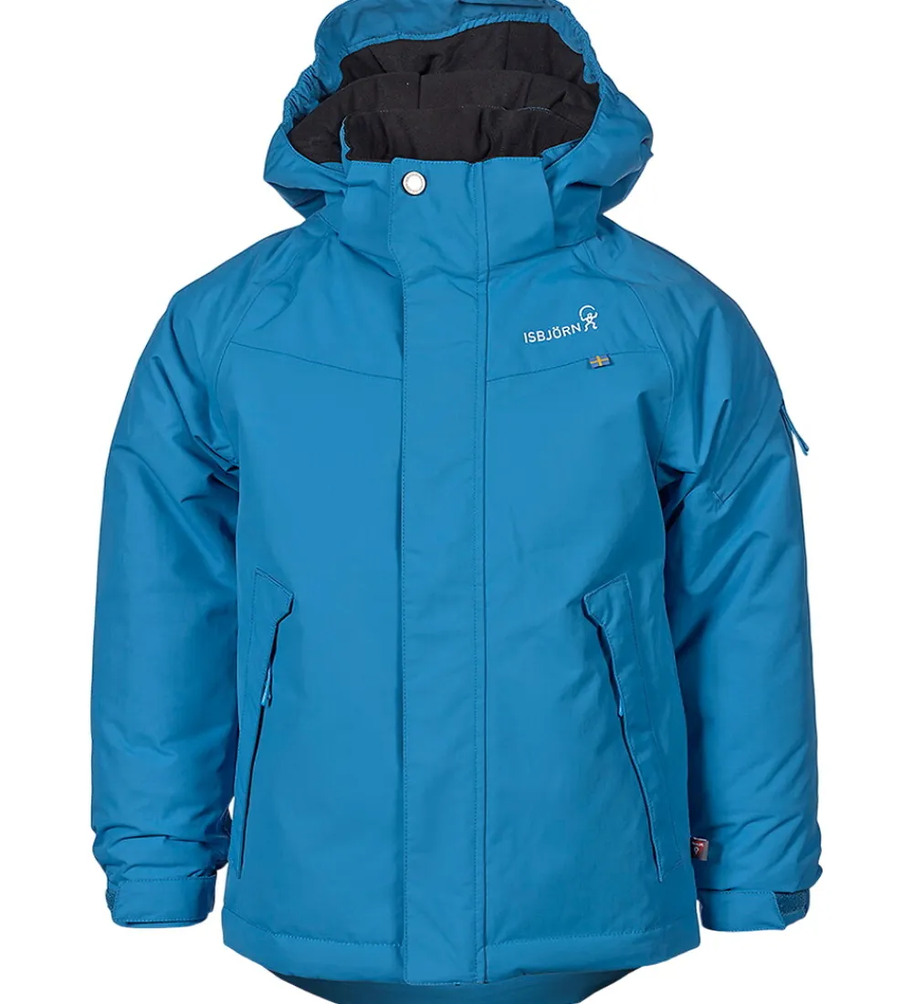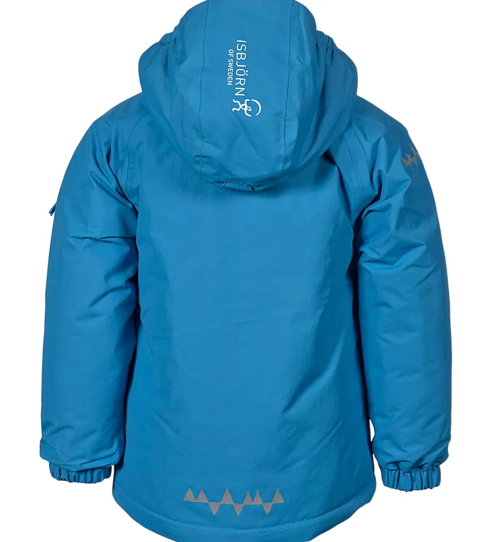Flot Isbjörn Of Sweden vinterjakke i blå. Vinterjakken har hvide logoprint på venstre bryst og hætten samt smarte refleksprint på lænden og højre skulder.
