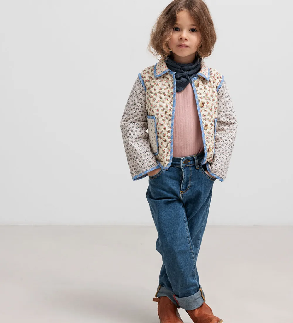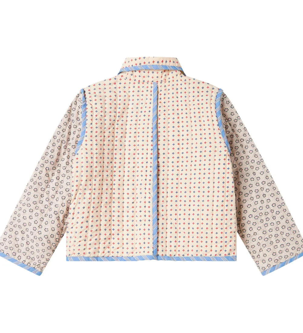 Charmerende MarMar jakke i en farverig kombination med forskellige blomsterprint. MarMar jakken har lange ærmer og to store forlommer, hvilket skaber et stilfuldt og funktionelt design. Den lukkes praktisk med gennemgående knapper på fronten.