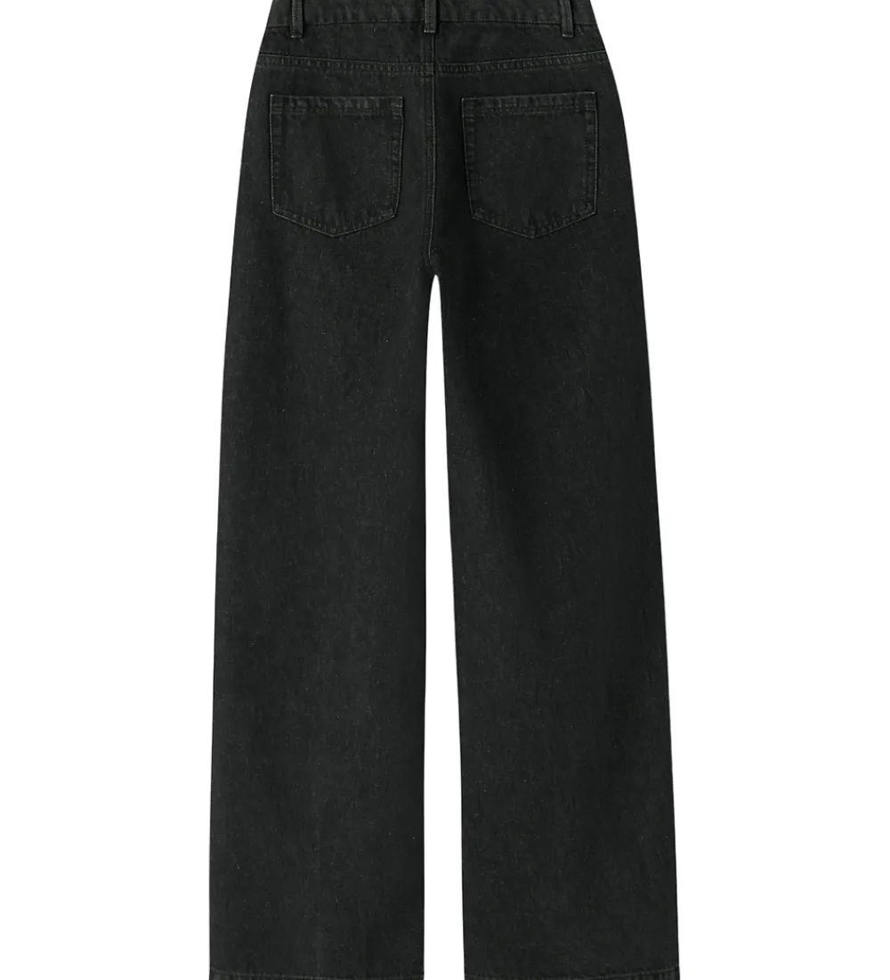 Stilfulde Name It jeans i sortmeleret denim nuance med små, elegante sløjfer af similisten fortil. Name It jeansene har en klassisk lukning med knap og lynlås samt praktiske lommer foran. De har også indvendigt justerbare elastikker i buksekanten. Jeansene har en standard lommedesign og giver et moderne udtryk.