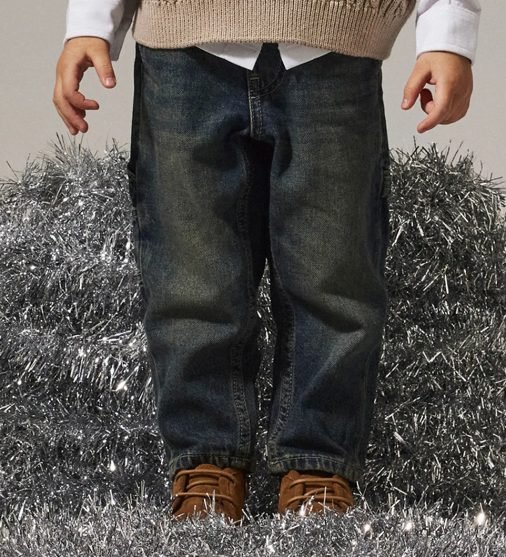 Praktiske Name It jeans i blå denim med vasket look. Name It jeansene har en elastisk talje, som kan justeres med knapper indvendigt. De har praktiske bæltestropper og lommer foran, bagpå og i højre side.