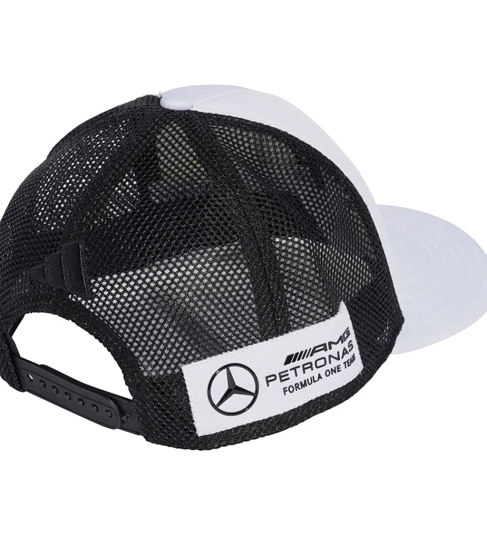 Smart adidas Performance kasket i hvid fortil og sort bagtil. I panden er der broderet et sort Mercedes-logo.