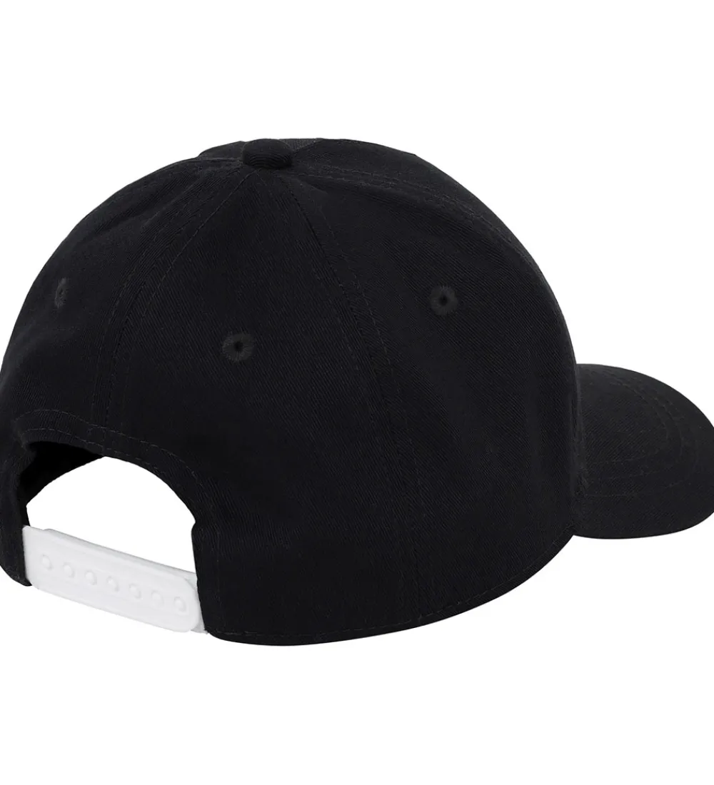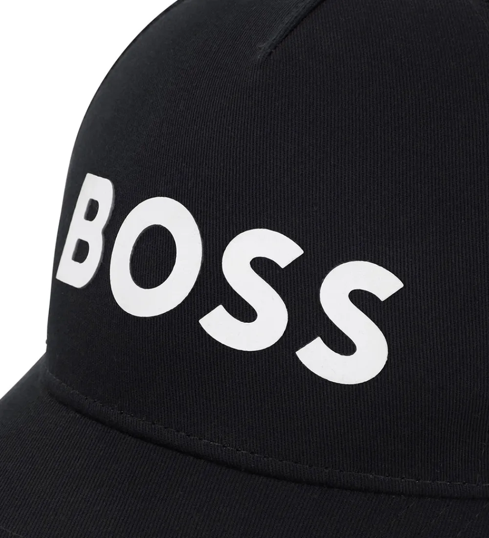 BOSS kasketten har en buet skygge, og den strammes ind i nakken med en hvide plastikrem.