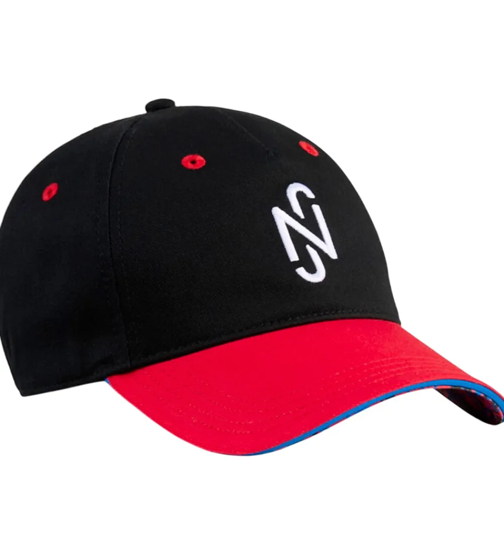 Smart kasket fra Puma i sort med en rød skygge. Kasketten har et hvidt Neymar Jr logo broderet i hvid på fronten og et hvidt Puma logo på siden.